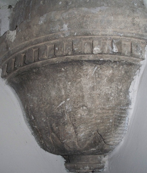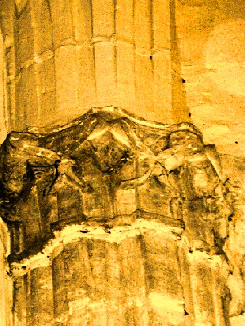 Detalle de los capiteles con figuras de ranas entrelazadas. Foto José Ig. Rodríguez. Año 2007